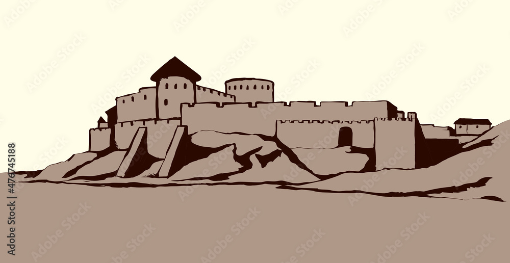 Billede på lærred Ancient city on rock. Vector drawing