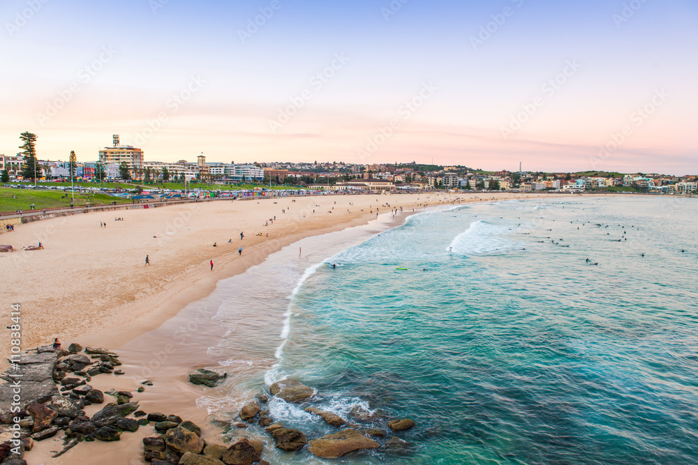 Fototapet Overlooking Bondi Beach in Sydney during the sunset.