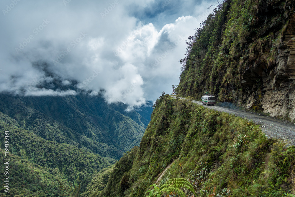 Fototapet Death Road – Todesstrasse Biking durch die Yungas