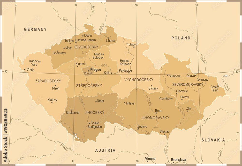 Fototapet Czech Republic Map - Vintage Detailed Vector Illustration