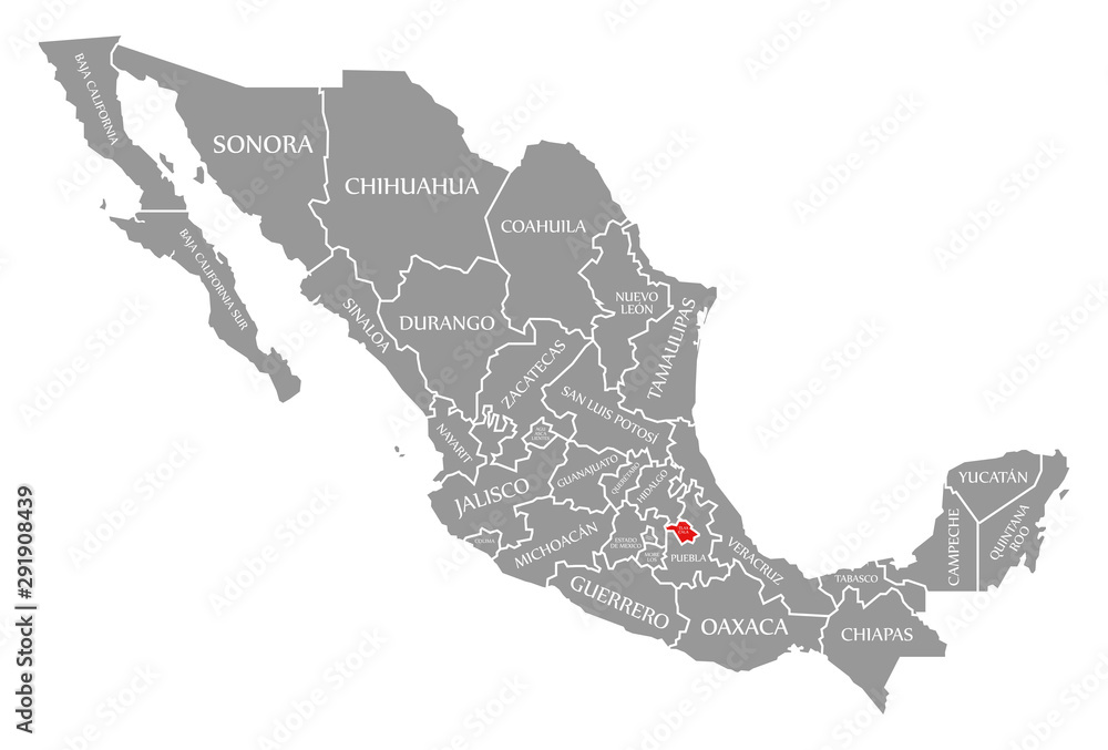 Fototapet Tlaxcala red highlighted in map of Mexico