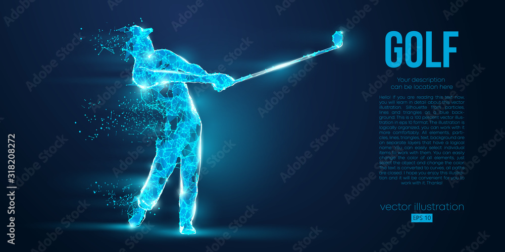 Fototapet Silhouette of a golf player, golfer from particles on blue background