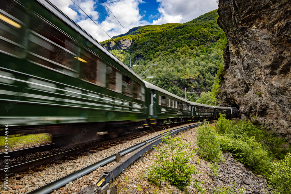 Fototapet Flam Line is a long railway tourism line between Myrdal and Flam in Aurland, Norway