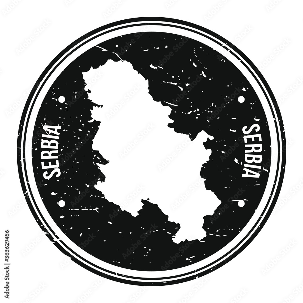 Fototapet Serbia Map Symbol Round Design Stamp Travel and Business Badge.