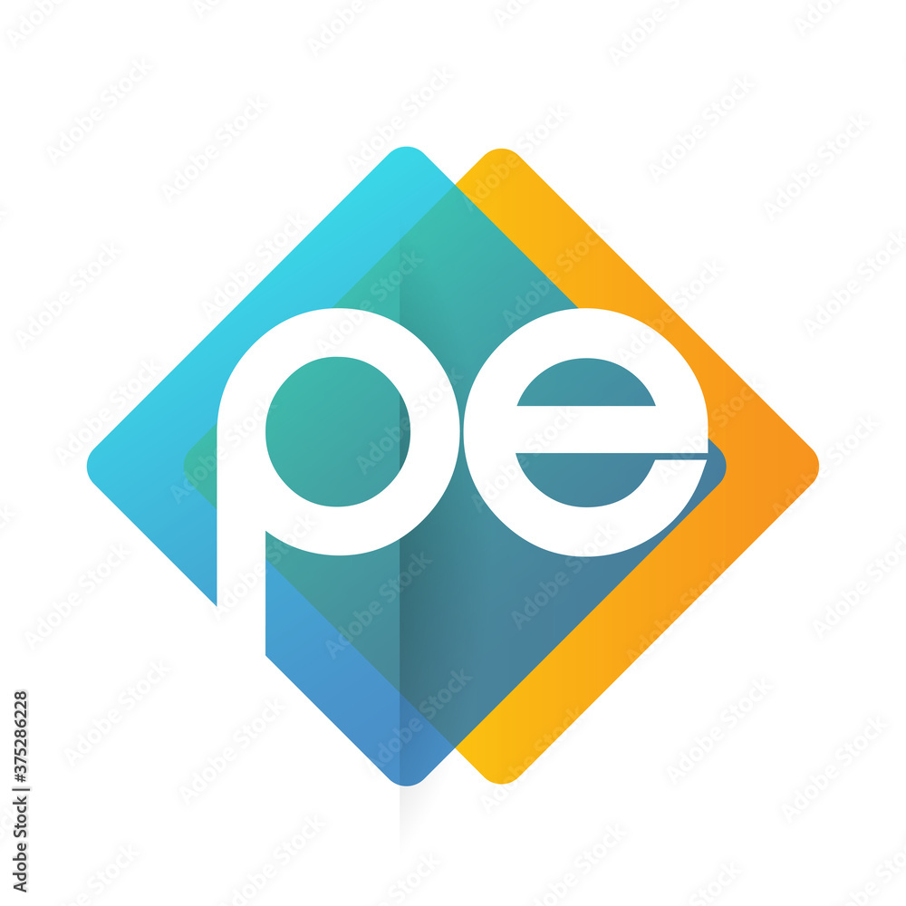 Fototapet Letter PE logo with colorful geometric shape, letter combination logo design for creative industry, web, business and company