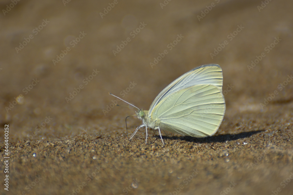 Fototapet Small White butterfly, Pieris rapae, on ground