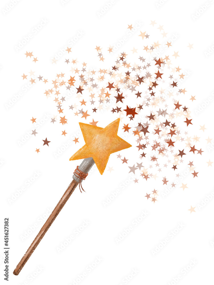 Fototapet Fairytale magic wand with multicolored stars drawing
