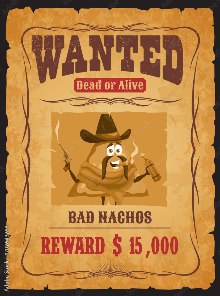 Fototapet Western wanted poster with bad nachos robber character