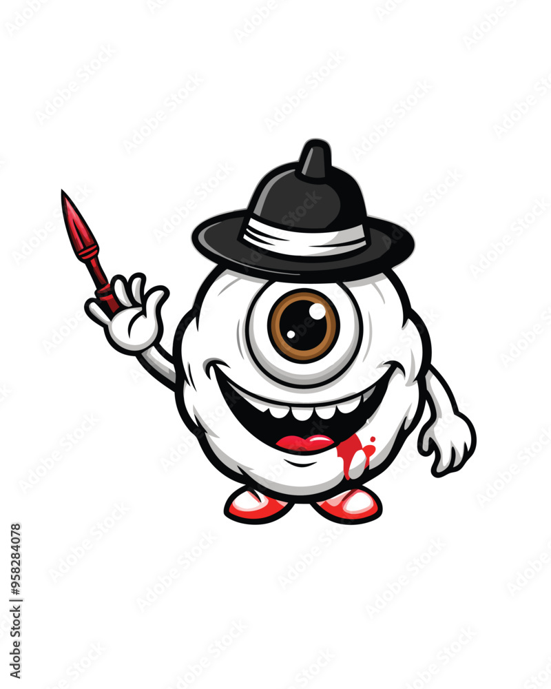 Fototapet Design a one-eyed monster with a blood-streaked grin holding a knife