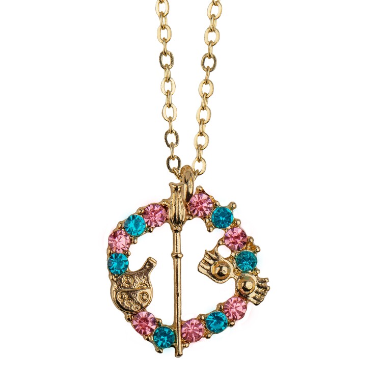 En charmerende halskæde inspireret af Luna Lovegood, perfekt til fans der ikke er bange for at vise deres unikke stil. Vedhænget er lavet af zinklegering og prydet med en strassten (2,3 × 2,3 × 0,1 cm) og hænger på en jernkæde på 45 cm, justerbar op til 51 cm.