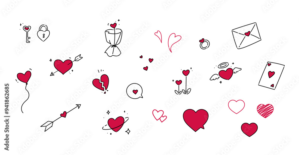Fotografi Heart item illustration set for gift, card, romantic decoration, etc