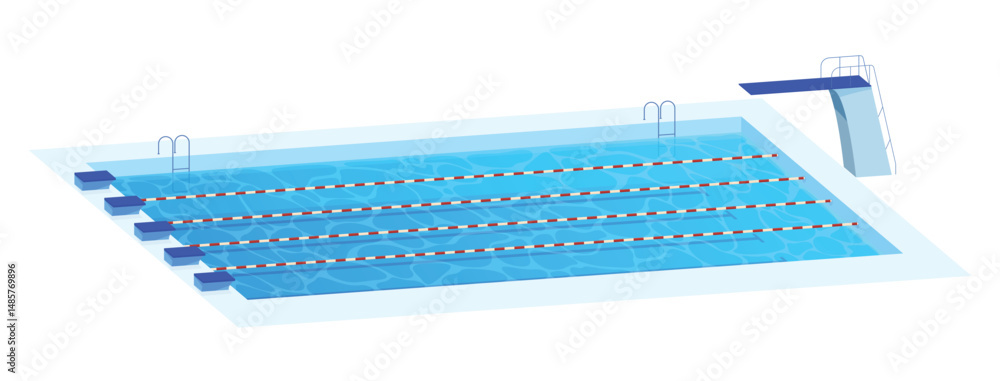 Fotografi Illustration of a sports pool equipped with marked lanes and a diving board