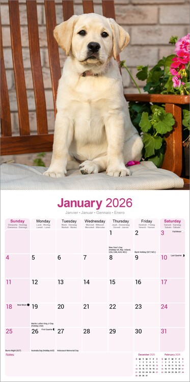 • Kalender Labrador Ret - Yellow kan hænges på enhver væg