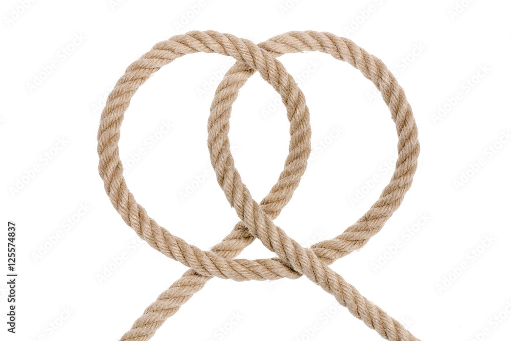 Vægklistermærke Nautical rope knot. Clove hitch isolated on white background.