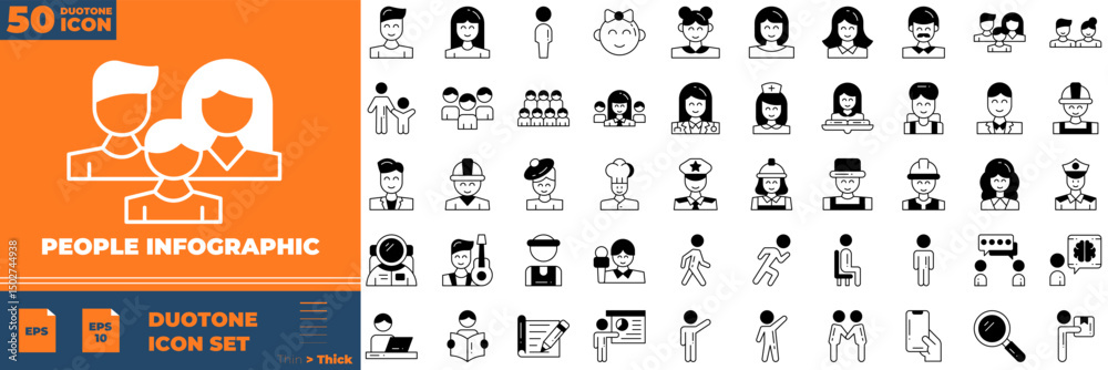 Vægklistermærke People Infographic Duotone Editable Icons set