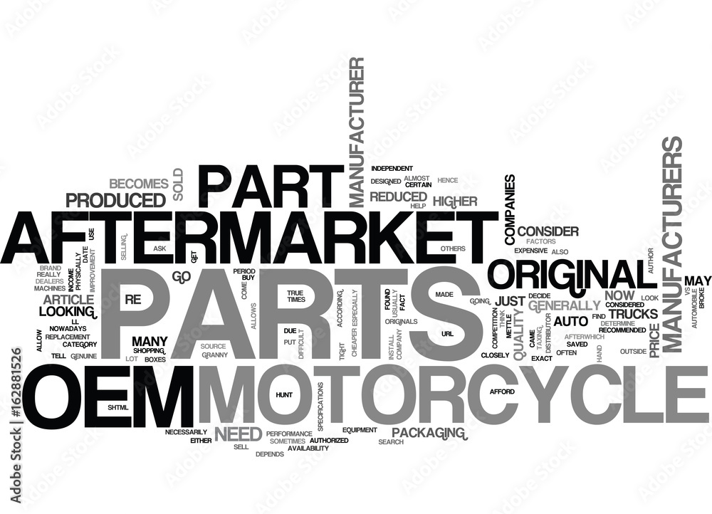 Vægklistermærke AFTERMARKET VS OEM MOTORCYCLE PARTS TEXT WORD CLOUD CONCEPT