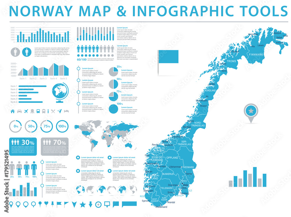 Vægklistermærke Norway Map - Info Graphic Vector Illustration