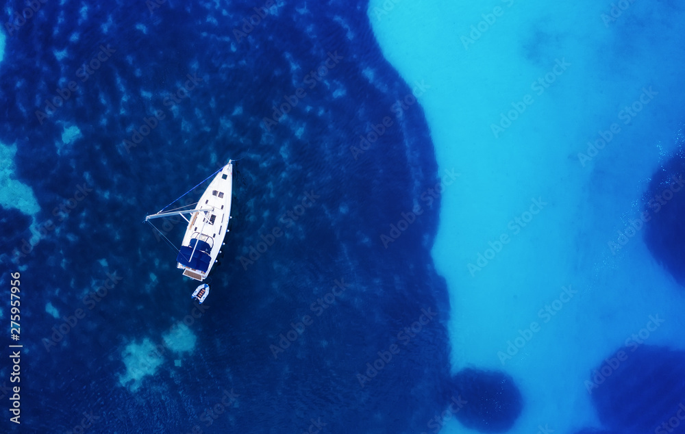 Vægklistermærke Yacht on the water surface from top view