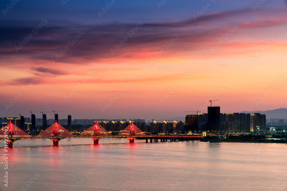 Vægklistermærke named bayi bridge in the night of shanghai china