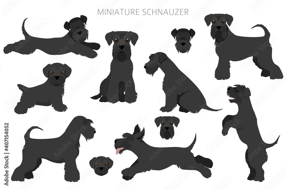 Vægklistermærke Miniature schnauzer dogs in different poses and coat colors