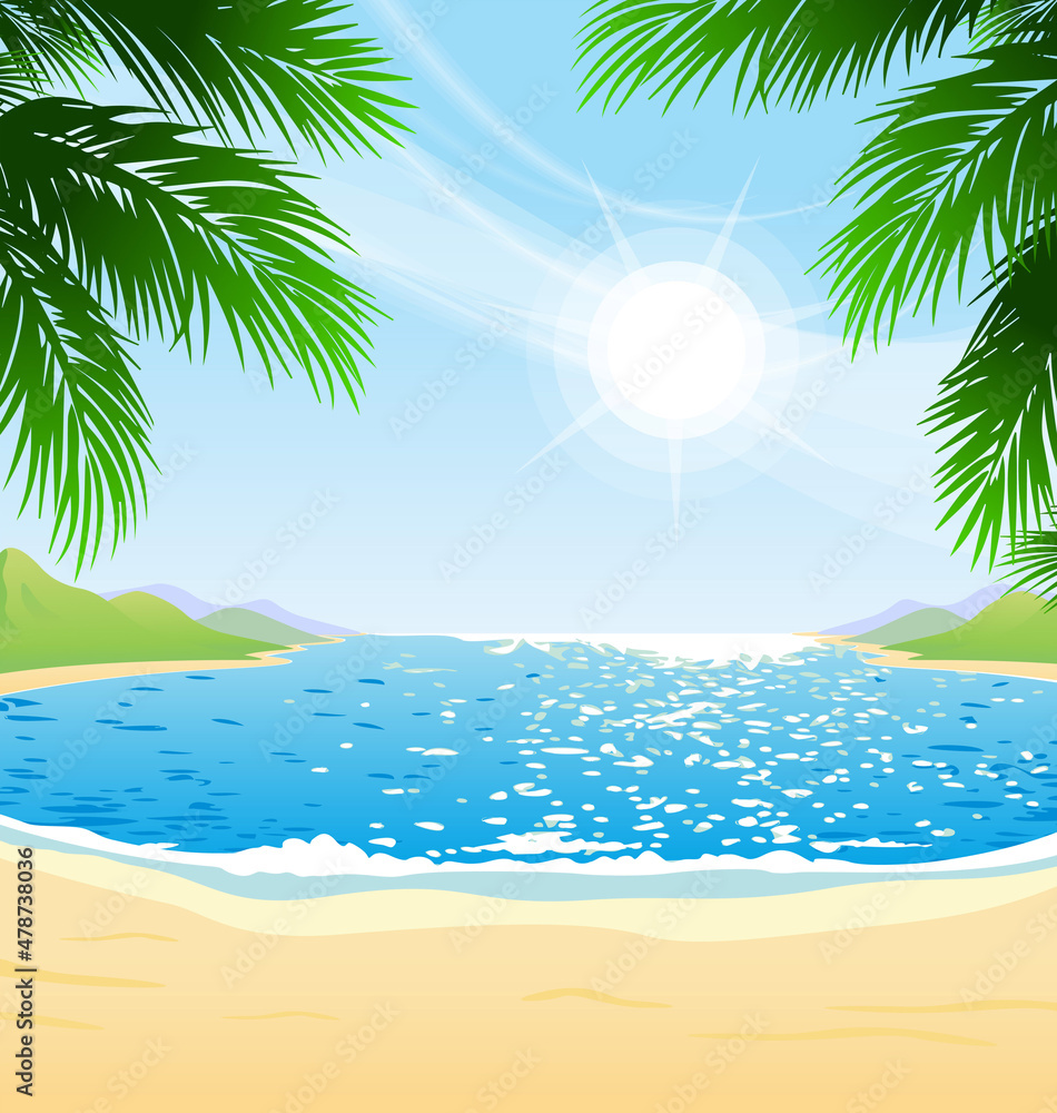 Vægklistermærke beautiful sunny day at beach bay cove