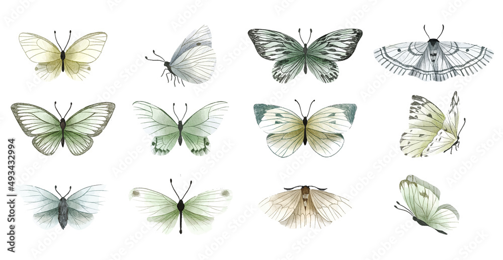 Vægklistermærke Set of gentle hand drawn butterflies, hand drawn