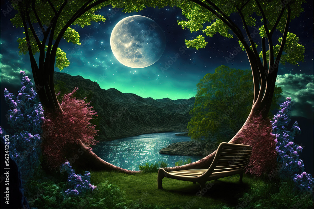 Vægklistermærke a fairytale inspired place to watch the moon and enjoy the peace, generative ai