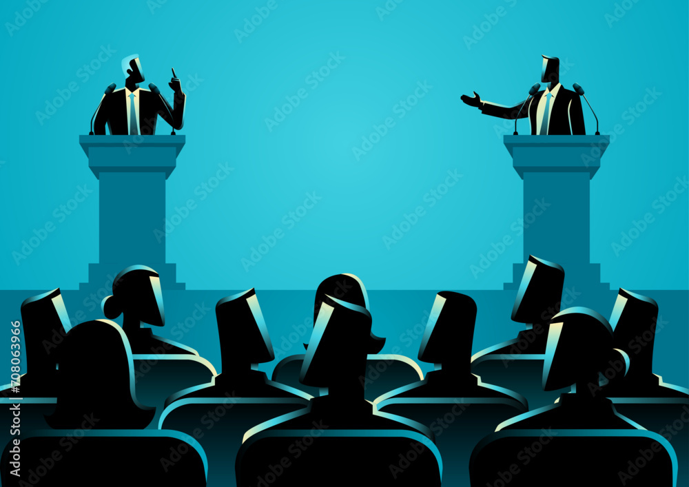 Vægklistermærke Vector illustration depicting two individuals engaged in a spirited debate on a