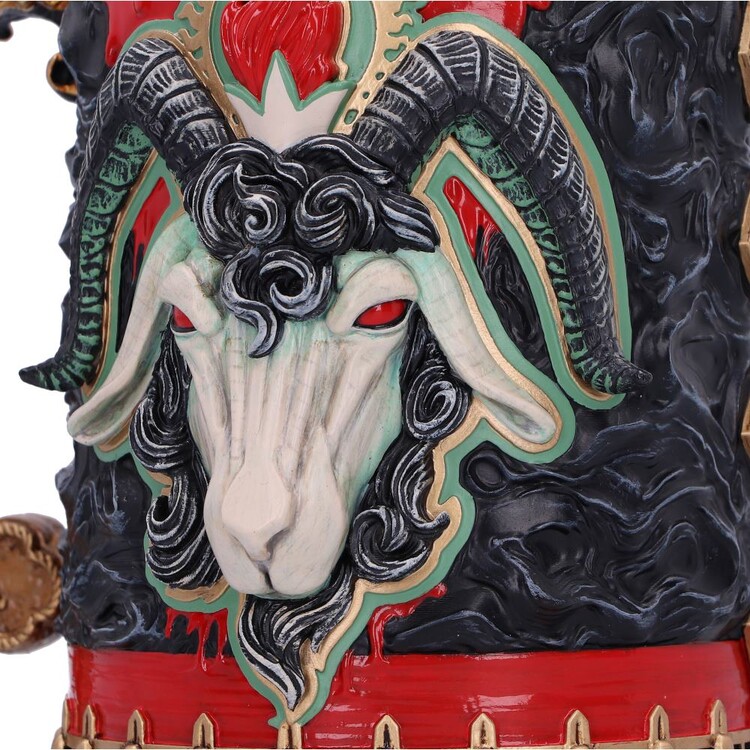 Hyld thrash metal-guderne med Nemesis Nows officielt licenserede Slayer Reign in Blood-kande. Med kunst fra det ikoniske album, inklusive et satanisk gedehoved foran og det øjeblikkeligt genkendelige logo bagpå, fremkalder den hastigheden og aggressionen i Slayers musik. Støbt i den fineste harpiks og håndmalet, indeholder kanden en aftagelig indsats i rustfrit stål, så du kan bruge mindre tid på at gøre rent og mere tid på at moshe! Leveres i en gaveæske med logo, ideel som gave eller til sikker opbevaring.