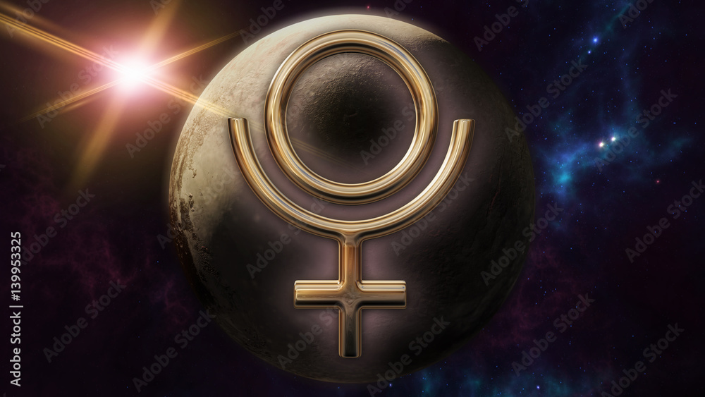 Billede på lærred Pluto zodiac horoscope symbol and planet. 3D rendering