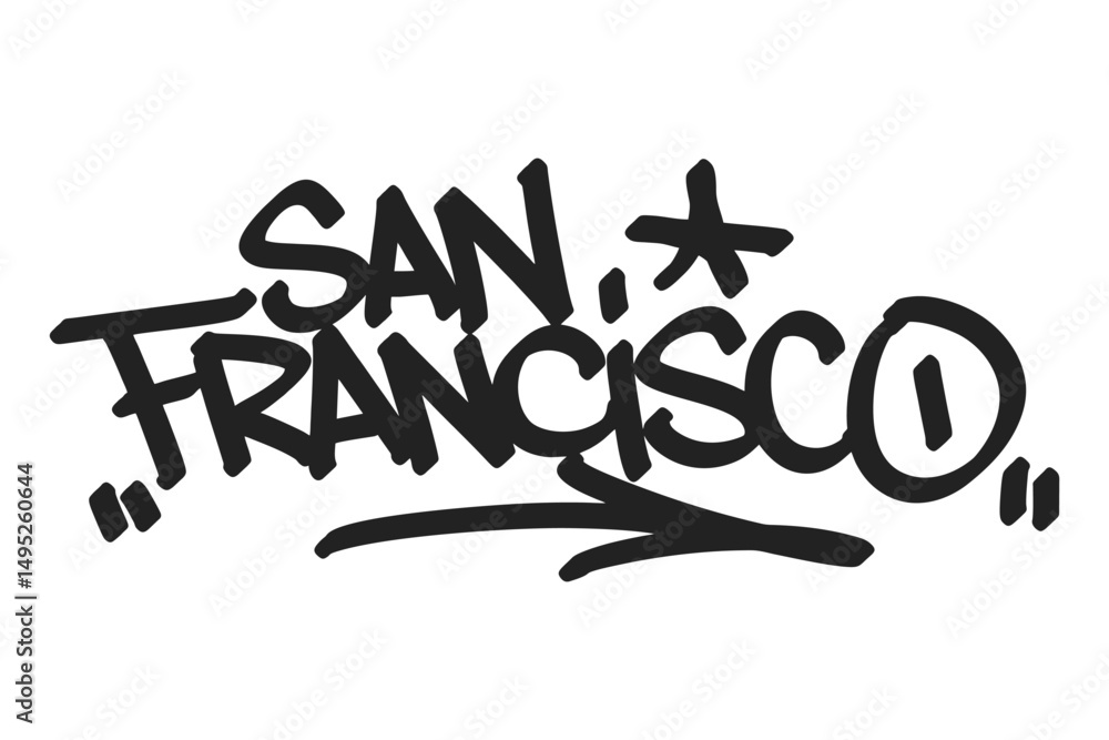 Billede på lærred San Francisco graffiti tag in bold black lettering on white background