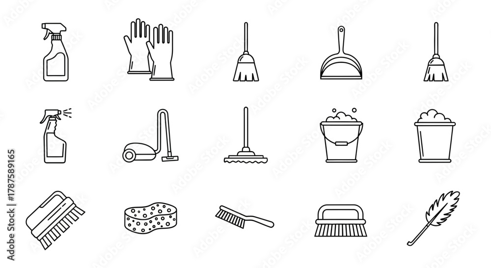Billede på lærred Sparkling clean home essentials icons for professional cleaning services and hou