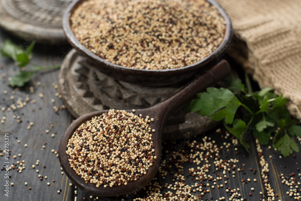 Billede på lærred Mix of organic white, yellow and black quinoa, dietary and healthy food