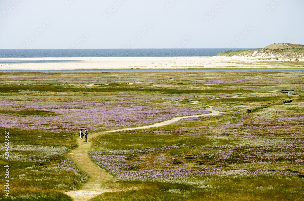 Billede på lærred View from the top of a dune towards the Slufter nature reserve on the Dutch isla