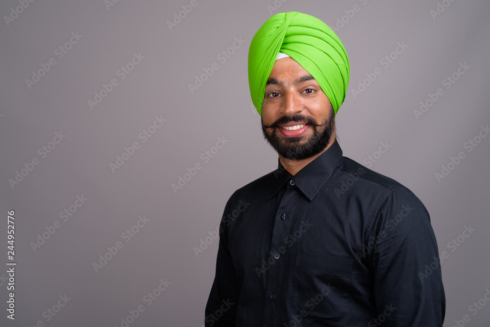 Billede på lærred Young Indian Sikh businessman wearing green turban