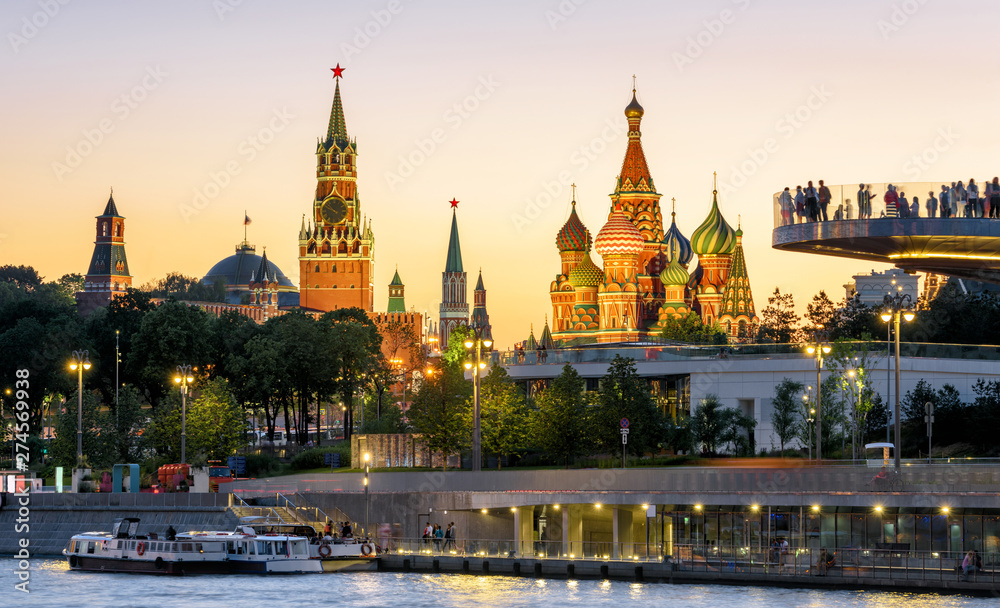 Billede på lærred Moscow Kremlin and St Basil`s Cathedral at sunset, Russia