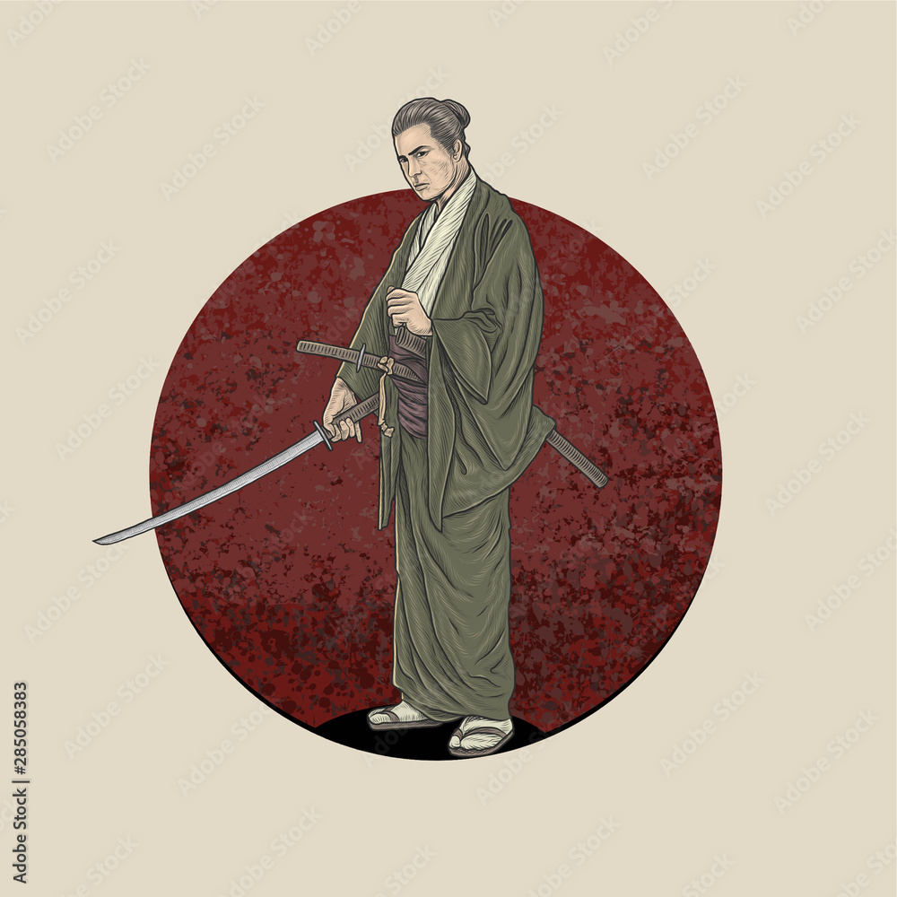 Billede på lærred samurai warrior holding katana ready to fight