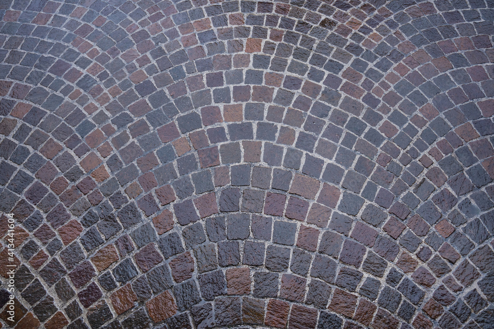 Billede på lærred wet road pavement in gray porphyry cubes. background