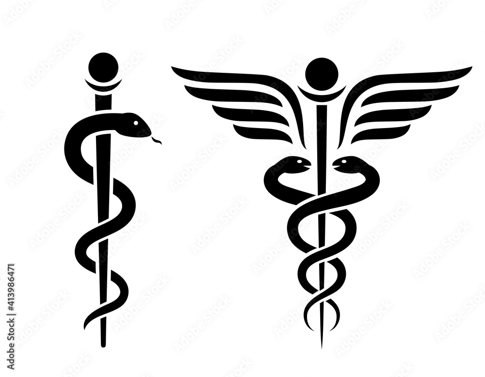 Billede på lærred Snake medical icon, caduceus vector sign