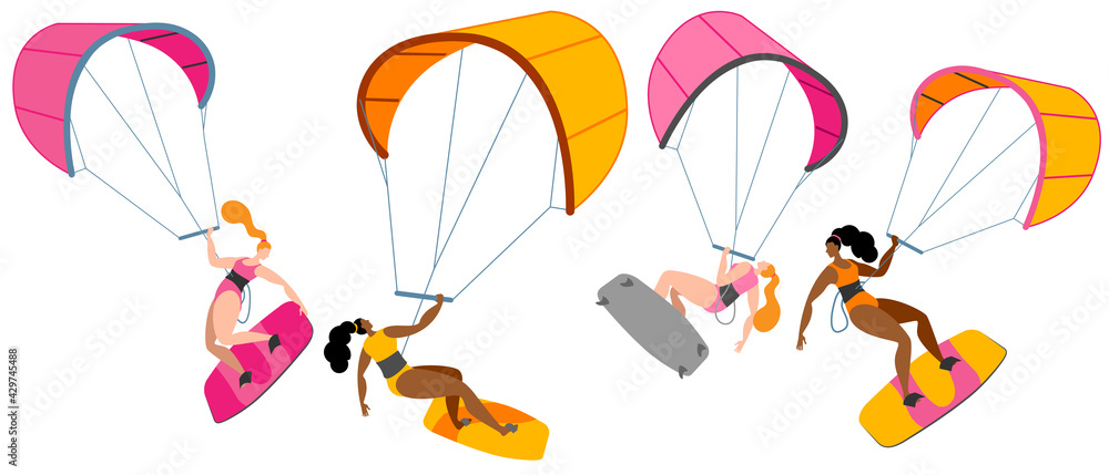 Billede på lærred A girl on a board is engaged in kitesurfing