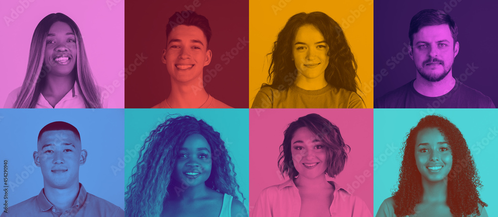 Billede på lærred Collage of eight people describing emotion of peace, happiness