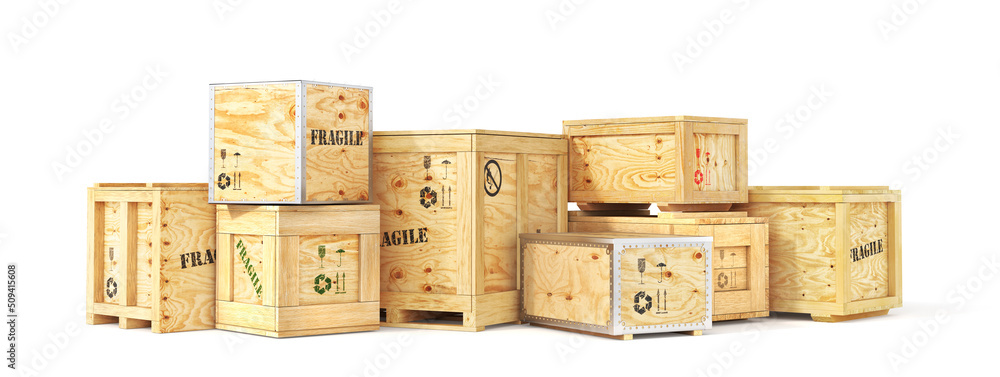 Billede på lærred Delivery wooden boxes isolation on a white background