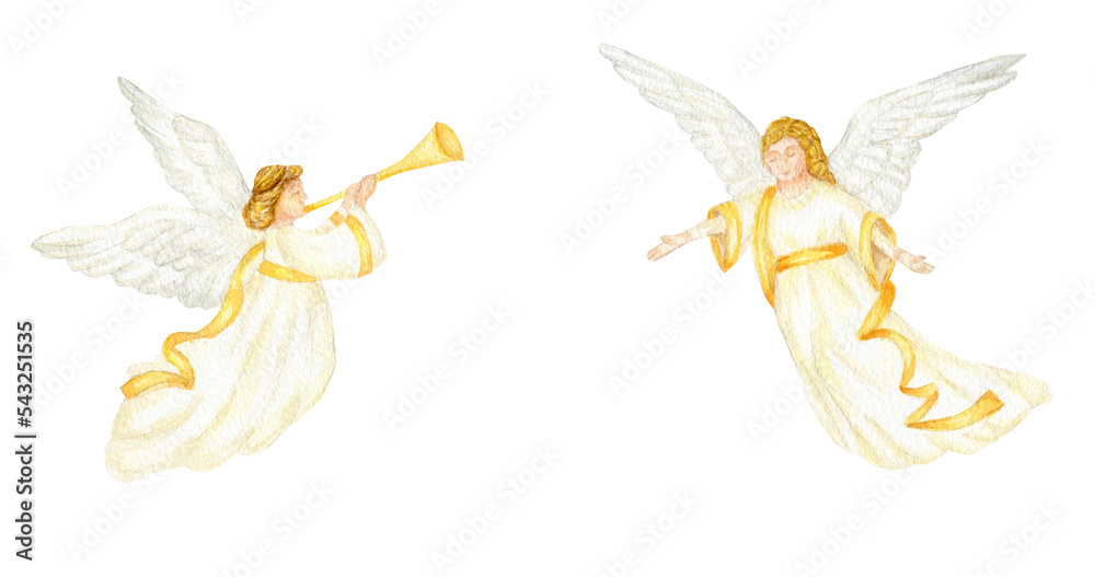 Billede på lærred Christmas angels set watercolor illustration, Christian Nativity angel with wing