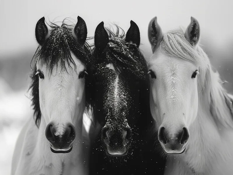 Billede på lærred 3 Horses Black and White