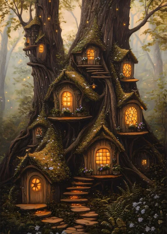 Vægklistermærke Fairy Tree Homes