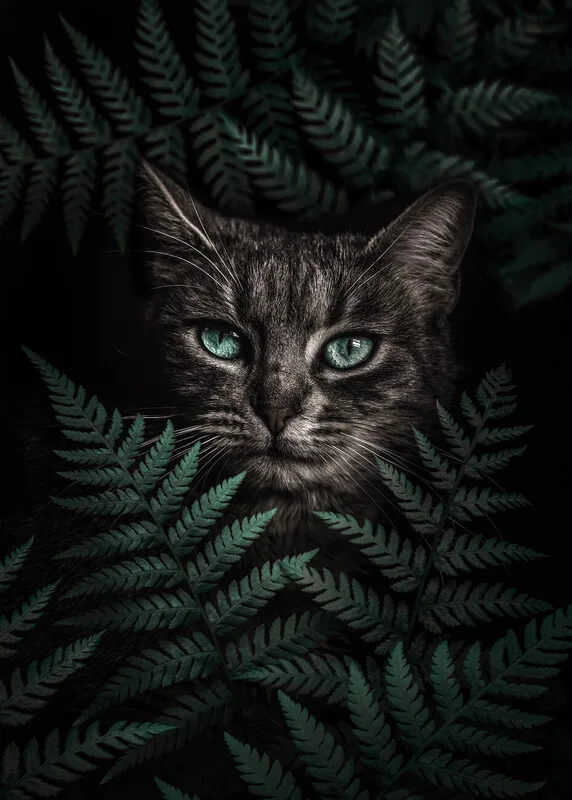 Vægklistermærke Green Eyes Cat With Ferns