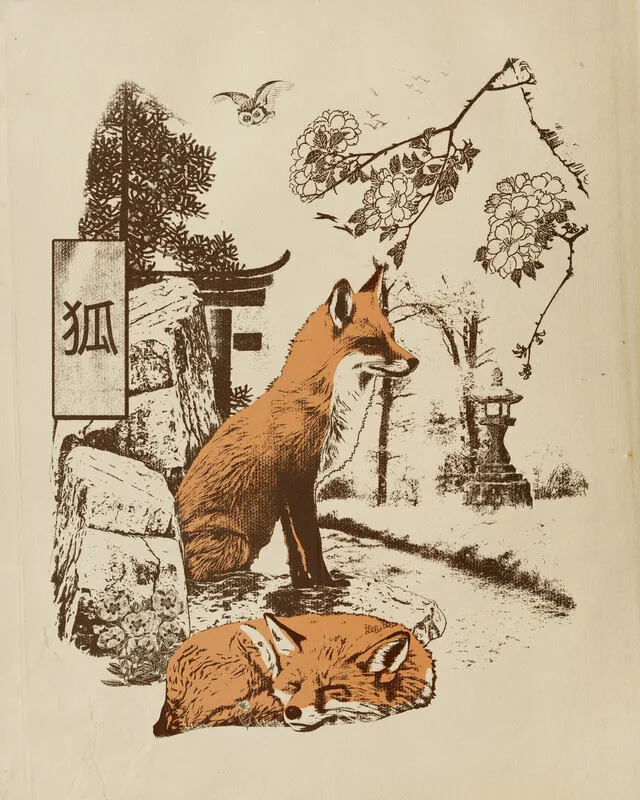 Billede på lærred Kitsune - Traditional Japanese Poster Design