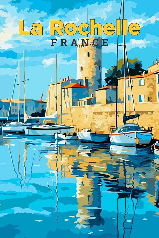 Billede på lærred La Rochelle France Vintage Art Travel Illustration Poster