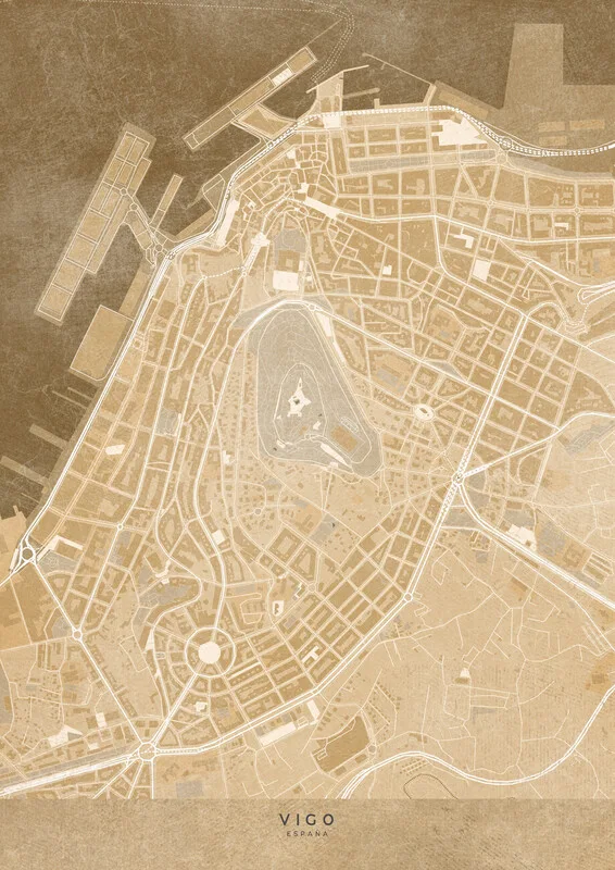 Billede på lærred Map of Vigo downtown (Spain) in sepia vintage syle