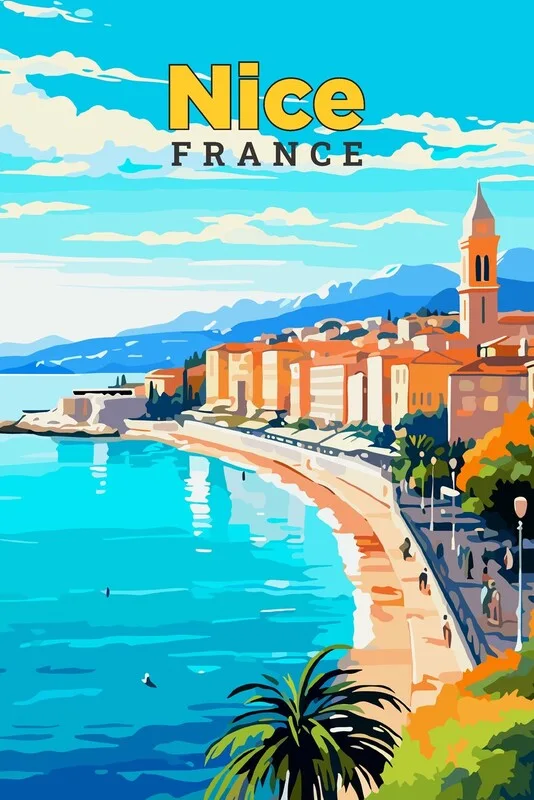 Billede på lærred Nice France Vintage Art Travel Illustration Poster